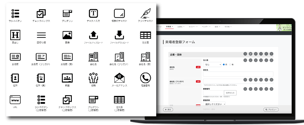 イベントの特性に応じたWeb申込みフォームを柔軟に作成できます。