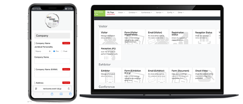 来場者管理機能のみや出展社管理機能のみの導入など、イベントに必要な機能に分けての導入が可能です。
