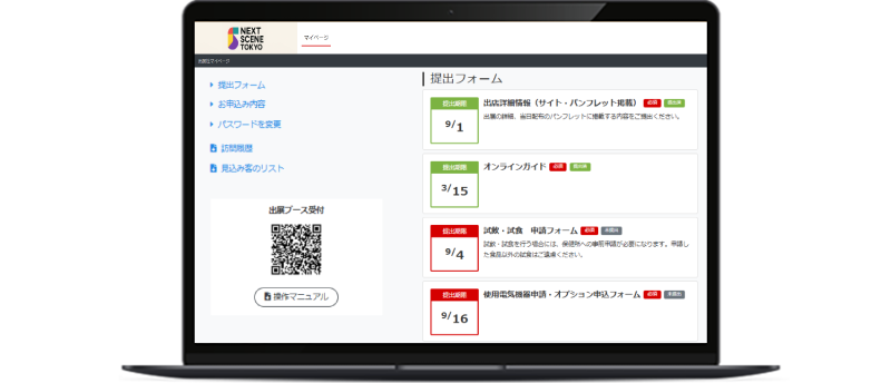申込者ごとに専用のマイページが発行され、提出書類のやりとりをWeb上で簡単に行えます。リマインドメールや提出期限も設定可能。グループごとに出し分けも可能なため、イベントの出展社や講演者の提出物管理に役立ちます。